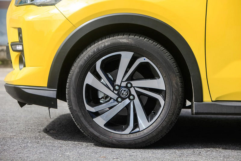Toyota Raize được trang bị lazang kích thước 17inch, kiểu dáng 5 chấu xoáy theo phong cách quen thuộc thường thấy trên nhiều mẫu xe của Toyota như Wigo, Yaris, Vios…